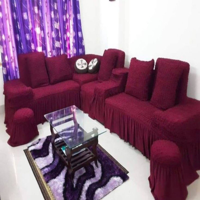 Deep Maroon Color Sofa Cover 2+2+1+Corner+Box+Cushion+Te-Table