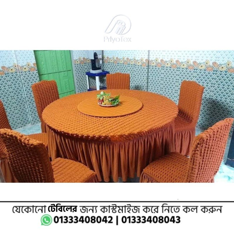 Turkey Orage Color Round Dining Table + 6 Pis Chair Cover
