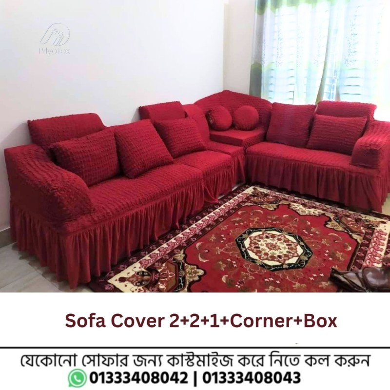 Turkey Maroon Color Sofa Cover 2+2+1+Corner+Box